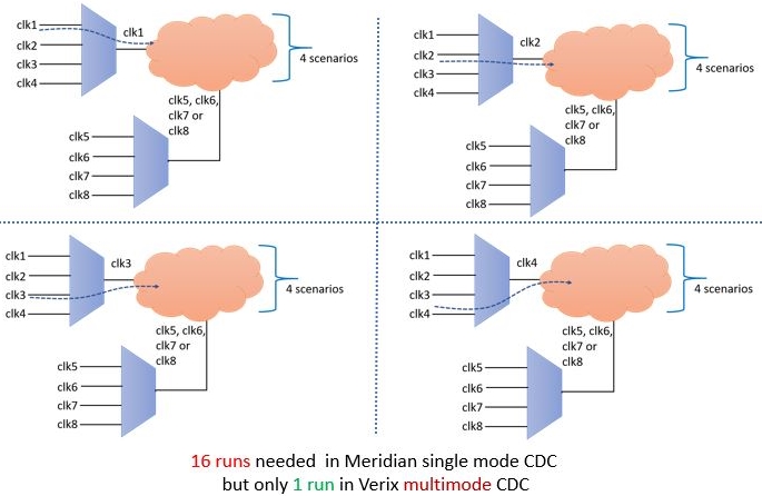 run Verix CDC just for 3 clock modes simultaneously, we easily