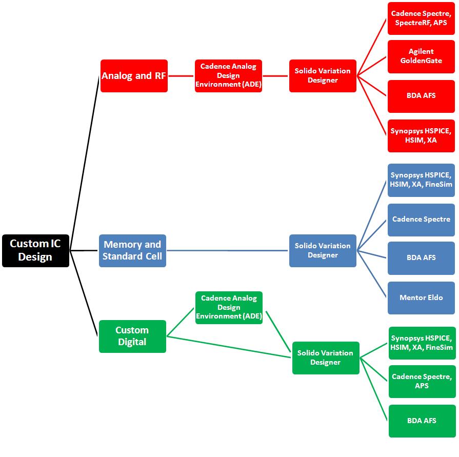 BDA AFS, Mentor Eldo, and Agilent GoldenGate. Solido Variation Designer is