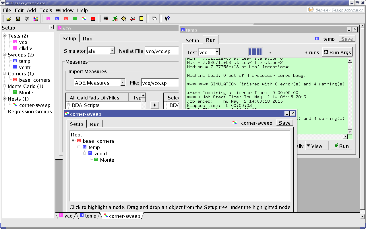 ACE supports BDA Analog FastSPICE (AFS) and any HSPICE-compatible or Spectre-