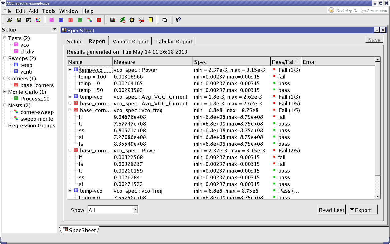 Spec Pass/ Fail Report
