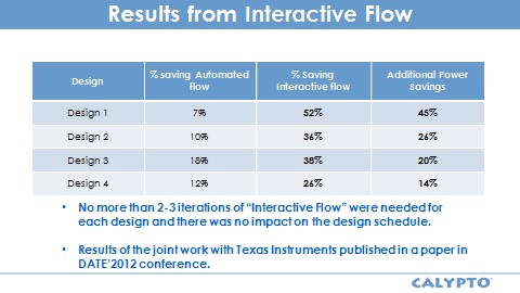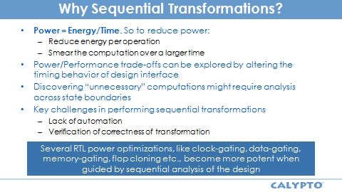 Anyway, Calypto sells a tool called PowerPro which analyzes and optimizes