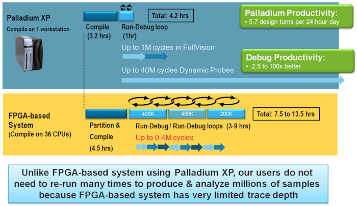Palladium had 2.5x the trace buffer size for full vision compared to Veloce,