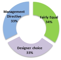 by top down directives, 2) by designer choice or 3) by a balance of the two.