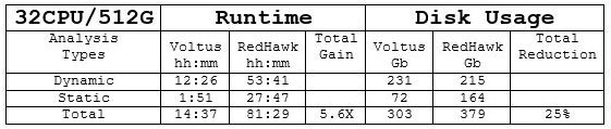 RedHawk to Voltus. Going from 3.5 day RedHawk runs to overnight Voltus