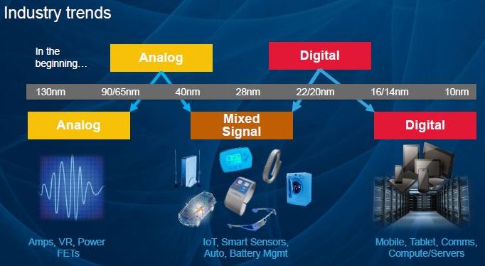 world splits at 28nm. Automotive, micocontollers are