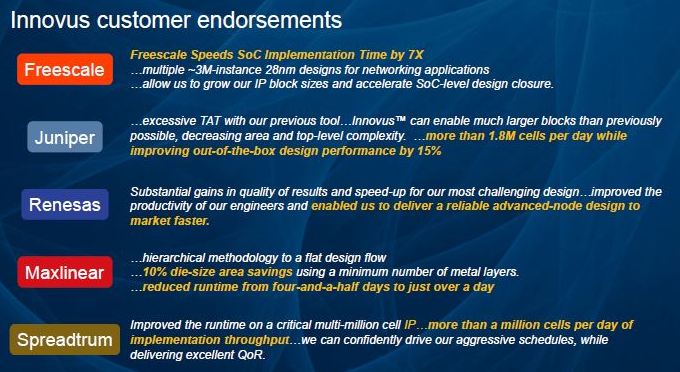 - the ARM guys are on record saying Innovus got the best implementation