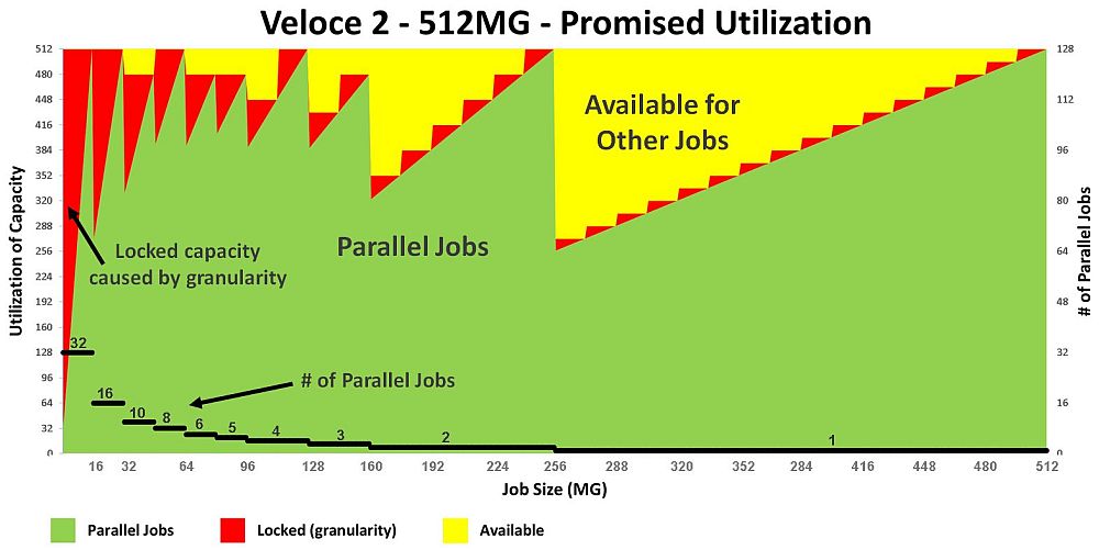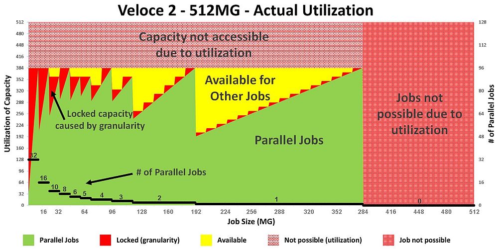 Fig 7. Veloce 2 Quattro utilization per job size