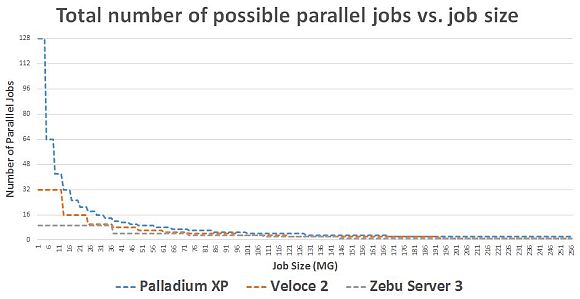 In terms of parallel jobs (y-axis on the right) the Palladium XP