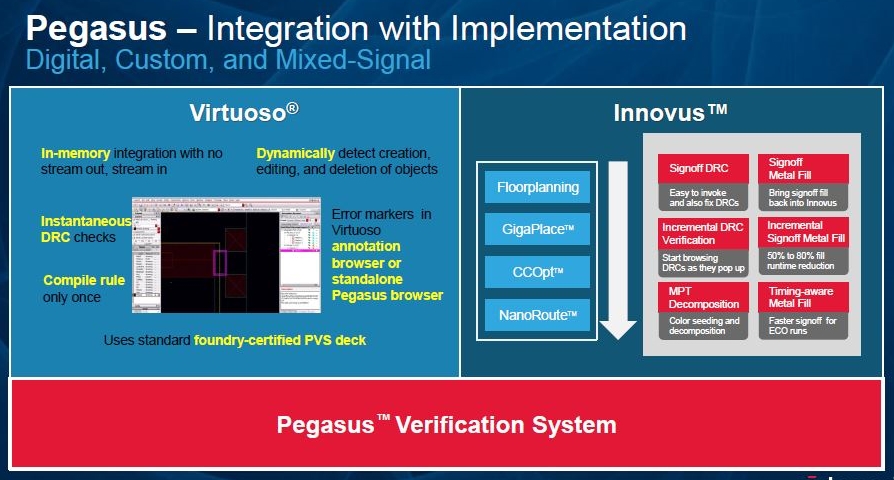 "... blah blah our Pegasus DRC works well in both our Innovus digital