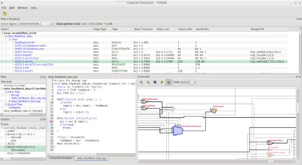 each stage of the high-level synthesis process like debugging scheduling