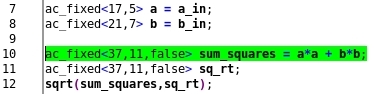 - support for algorithmic C and SystemC bit-accurate data types