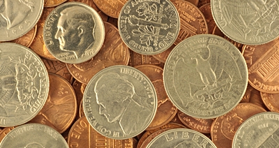 U.S. cents, nickels, dimes, quarters, half dollars.