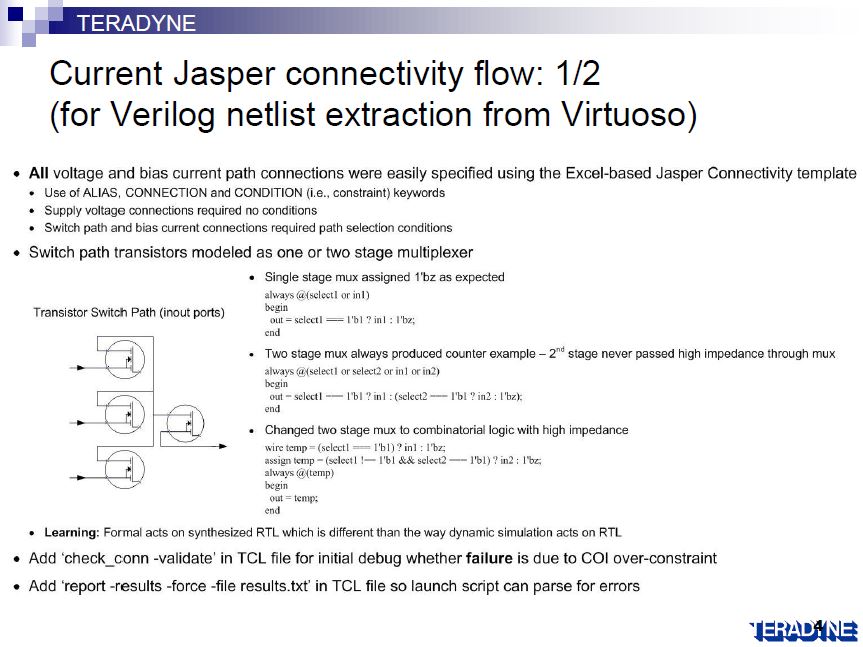 Their new Jasper connectivity flow is used on a Verilog netlist extracted