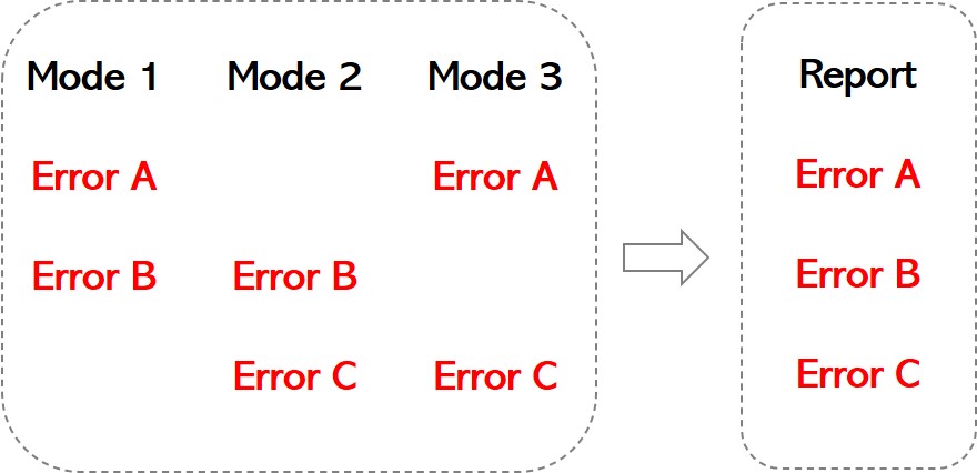 if a failure affects multiple modes, it gets reported only once.