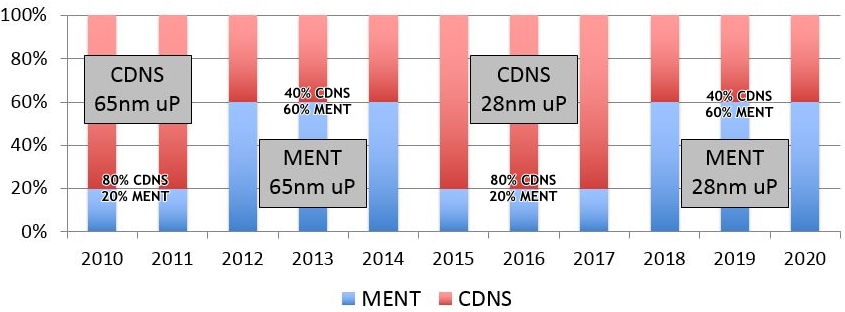 2nd new uP chip at the same node garners 60% of the new EDA HW sales.