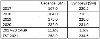see if I could puzzle out SNPS vs. CDNS HW sales -- who was ahead and who