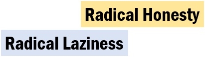 Subject: Cooley's two new policies of Radical Laziness and Radical Honesty