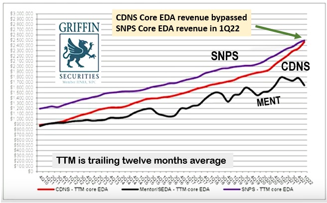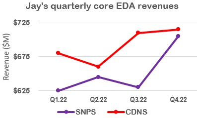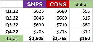 So for FY2022, Jay saw CDNS $160M ahead of SNPS in core EDA revenues.
