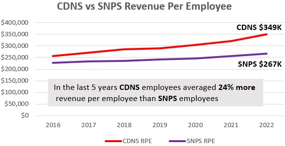 24% more than SNPS employees. For 2022 it was $350K vs $265K.