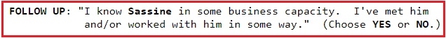 ... so each response below will have a YES or NO (to determine if they know Sassine)