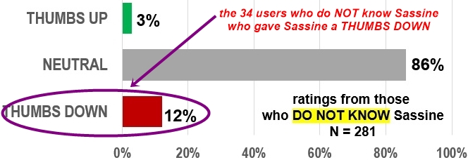Breakout -- remaining 12% (34 users) who DO NOT KNOW SASSINE giving him a THUMBS DOWN: