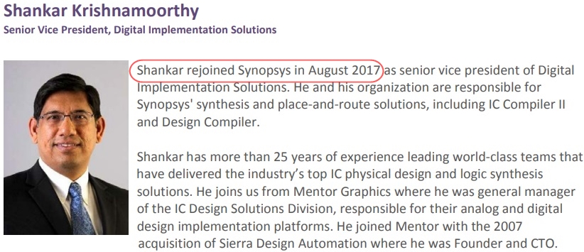 rehires. In 2017, Shankar returned to run the SNPS digital implementation group.
