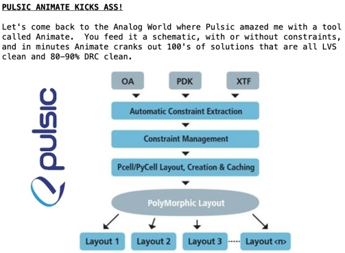 In short, by using Pulsic Animate, Cooper & Chyan VCAR, NeoLinear NeoCell, and