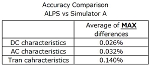 ALPS is 2X faster than "Simulator A", our preferred SPICE simulator.