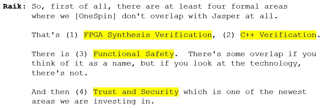 his OneSpin tools missing in action in my 2018 survey. His comeback was: