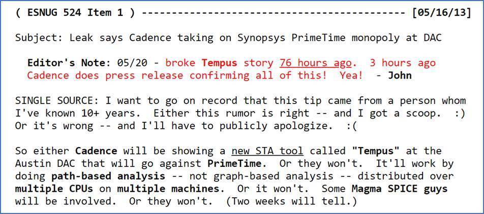 CDNS Tempus still against SNPS PrimeTime is #8 story at DAC'14